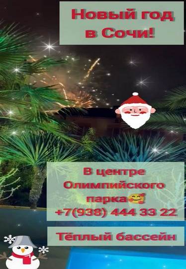 Тёплый подогреваемый бассейн, беседка с мангалом и собственная баня создают атмосферу уюта и расслабления. Наслаждайтесь теплыми зимними вечерами, свежим морским воздухом и прекрасным настроением! Всё рядом - море в пешей доступности, Сочи парк, зелёные зоны и комфорт для спокойного отдыха. Это место, где можно перезарядиться, восстановить силы и провести время с семьёй или друзьями. Зима - лучшее время для отдыха и новых впечатлений.